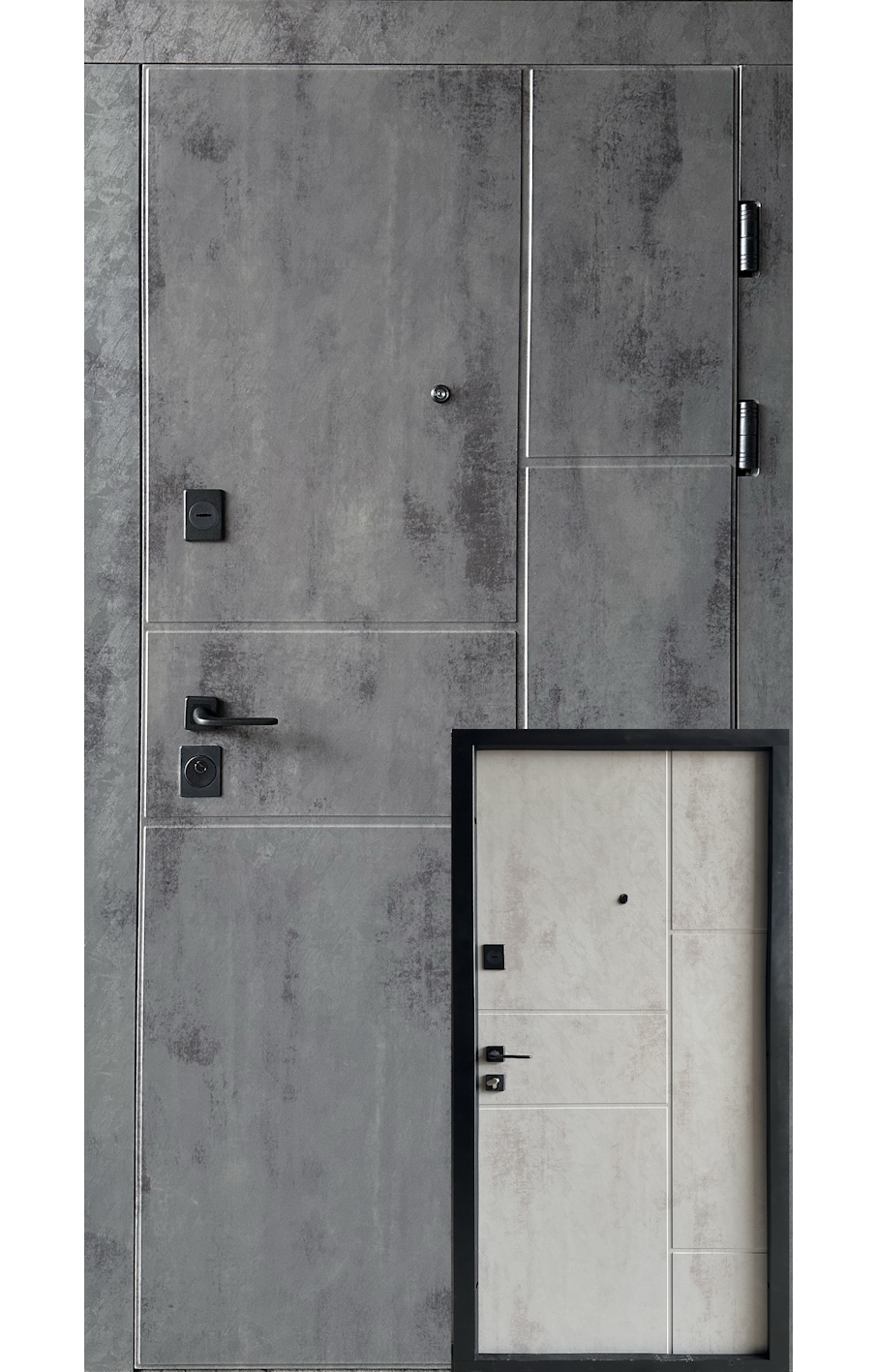 | Фурнітура* | 3 петлі, ручка на розетті, ексцентрик,утоплена броненакладка, чорна квадратна фурнітура |